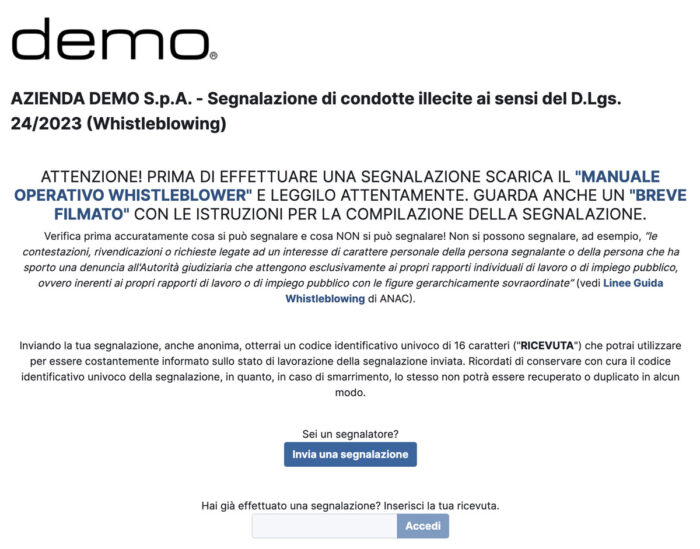Testa il nostro sistema di whistleblowing